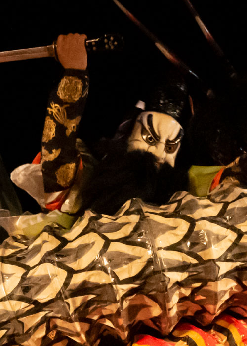 大太刀を持って歌舞伎の荒事を見せ、荒む魂、荒御魂を現して天上へと踊り込みます。